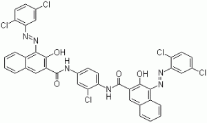 InChI: InChI = 1 / C40H23Cl5N6O4 / c41-22-9-12-29 (43) 33 (17-22) 48-50-35-25-7-3-1-5-20 (25) 15-27 ( 37 (35) 52) 39 (54) 46-24-11-14-32 (31 (45) 19-24) 47-40 (55) 28-16-21-6-2-4-8-26 ( 21) 36 (38 (28) 53) 51-49-34-18-23 (42) 10-13-30 (34) 44 / h1-19,52-53H, (Η, 46,54) (Η, 47,55)